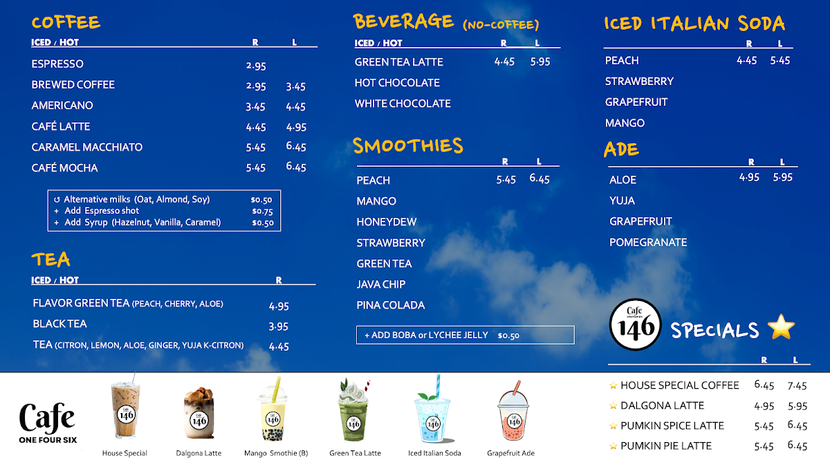 Introducing Cafe 146, a delightful haven for food enthusiasts in Frisco, TX. Nestled at 6495 Dallas Pkwy Ste B, this charming cafe showcases a vibrant menu filled with innovative dishes and refreshing beverages.