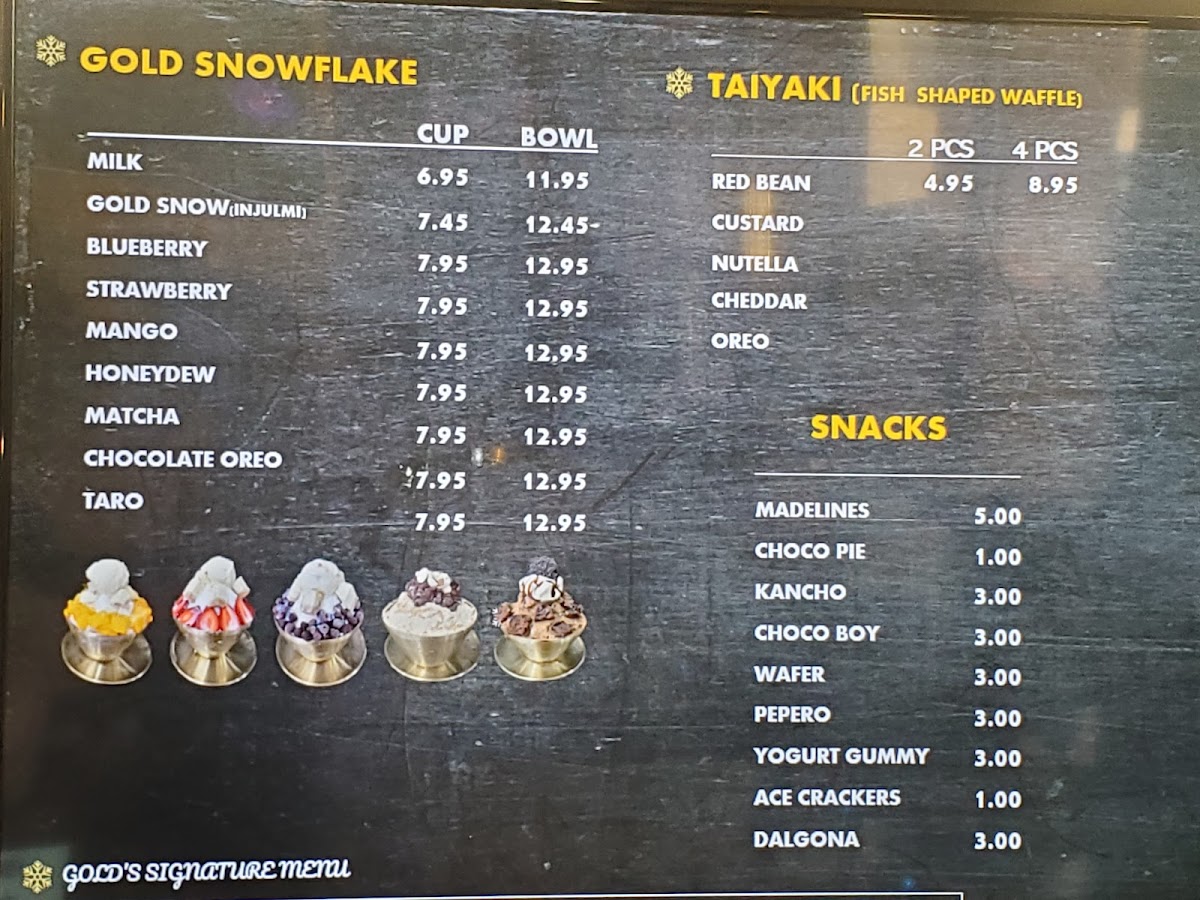 - Taiyaki: Indulge in these delightful fish-shaped waffles, available in custard, oreo, and red bean flavors, all served hot for an authentic experience.